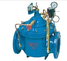 多功能水泵控制閥是由主閥和外表附件組成,主閥由閥體、膜片(活塞缸)、閥桿組件、主閥板、閥座等主要零件組成,外裝附件主要有控制閥、過濾器、排空閥、微止回閥,其中微止回閥是特制配件,在其止回方向設有限流孔。 手動操作啟閉 在水泵運轉時,先手動控制連通膜片控制室(活塞缸)的控制閥和排空閥,使P3或P4壓力等于零,膜片壓板或活塞單向承壓,可檢查閥板的啟閉情況。水力控制閥開啟時,由于緩閉閥板上升,主閥板被水流唾棄而實現開啟動作;閥門關閉時,緩閉閥板推動閥板關閉。 多功能水泵控制閥應用范圍: 多功能水泵控制閥安裝在水泵出水管道上,兼具電動閥、逆水閥和水錘消除器三種功能,有效地提高供水安全可靠性,水泵控制閥符合給水工程設備機械化和自動化的要求。