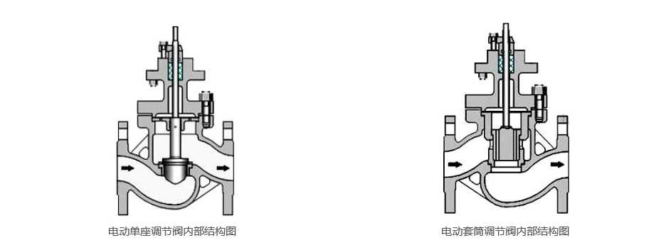 從應用上:電動單座調節閥只適合用在低流速的場合;而電動套筒調節閥能夠很好的阻擋住介質對閥座和閥芯的沖擊磨損,適合高流速場合。
